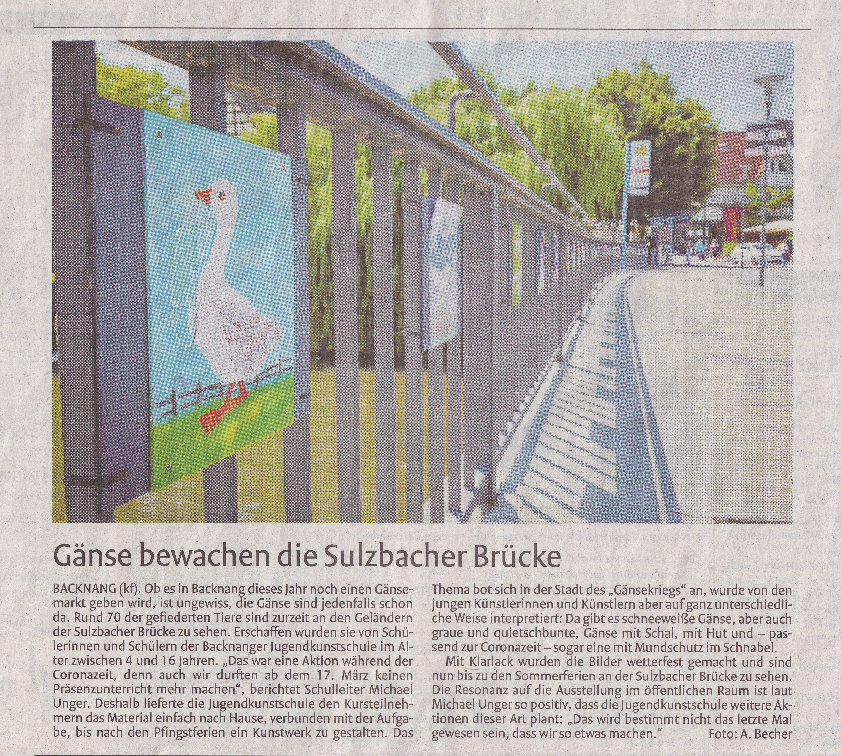 Eine 400 Jahre alte Geschichte rund um das Halten von Gänsen macht die Gans in Backnang zu einem Wahrzeichen. Die Musik- und Kunstschule Backnang hat daraus ein Kunstprojekt im öffentlichen Raum gemacht.